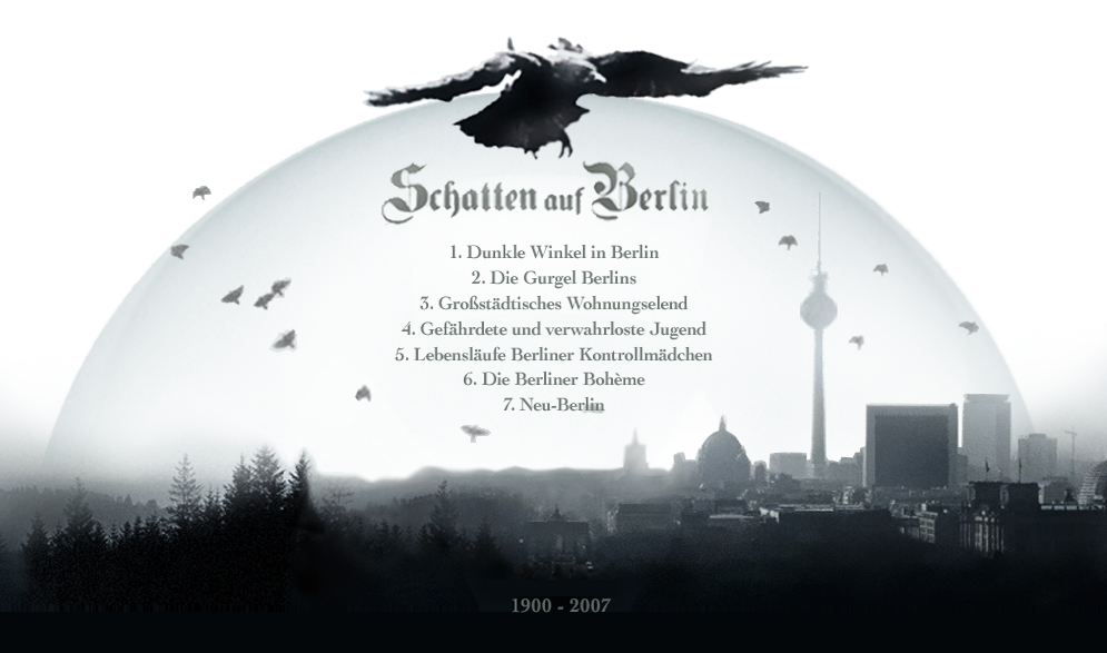| Die Initiative „Schatten auf Berlin“ untersucht soziale Missstände und das Außenseiterleben in der Hauptstadt. Im Geiste der historischen „Großstadt-Dokumente“ einer um die Jahrhundertwende entstandenen Sammlung aus Reportagen und Studien des Ethnografen Hans Ostwald, zeichnet das Projekt eine Momentaufnahme der dunklen Seite Berlins. 100 Jahre später definiert sich Berlin wieder einmal neu. Filmemacher, Fotografen und Autoren haben dafür drei Monaten lang Menschen gesucht, die ihre persönliche Geschichte erzählen und die Extreme zeigen. www.tagesspiegel.de www.schattenaufberlin.mindpirates.org |