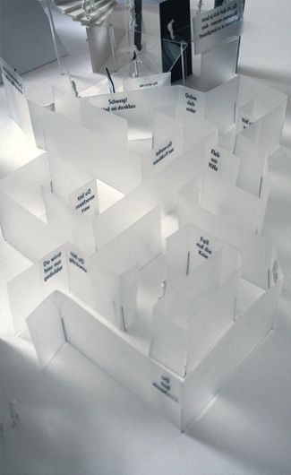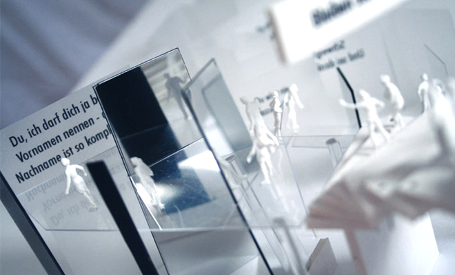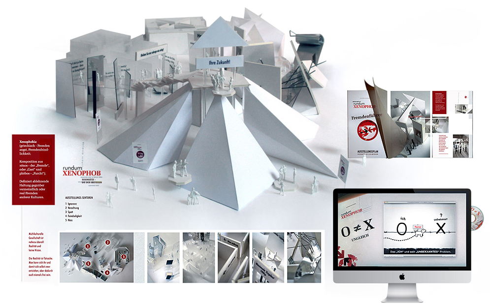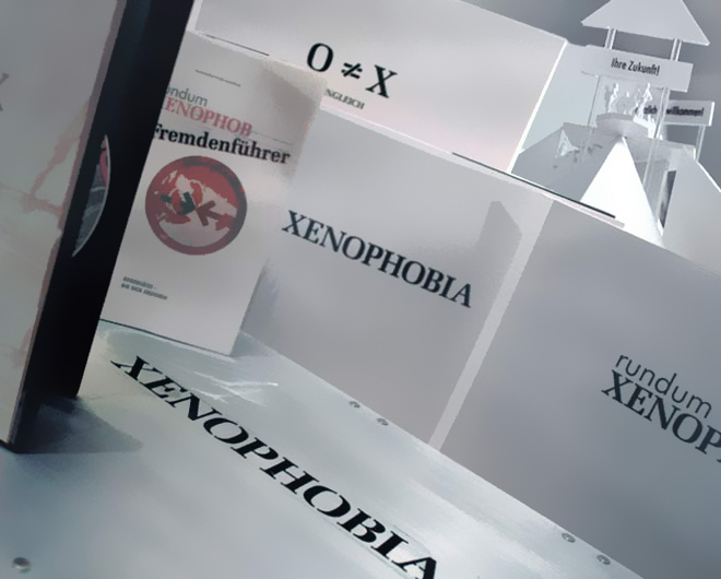 | The exhibition project "Xenophobia" is a creation of a visceral and conceptual experience in a particular environment focusing on xenophobia, the fear of people who are different from one's self. This installation concept is multi-sensory in its very essence. The extreme conditions like loosing the ground, which starts as simple sarcasm and disdain, coupled with intimidation, humiliation and undermining and ends up in more violent being, are fundamental to step with mind and body into a direct confrontation with the consequences of xenophobia. | Making-Of Xenophobia | ||